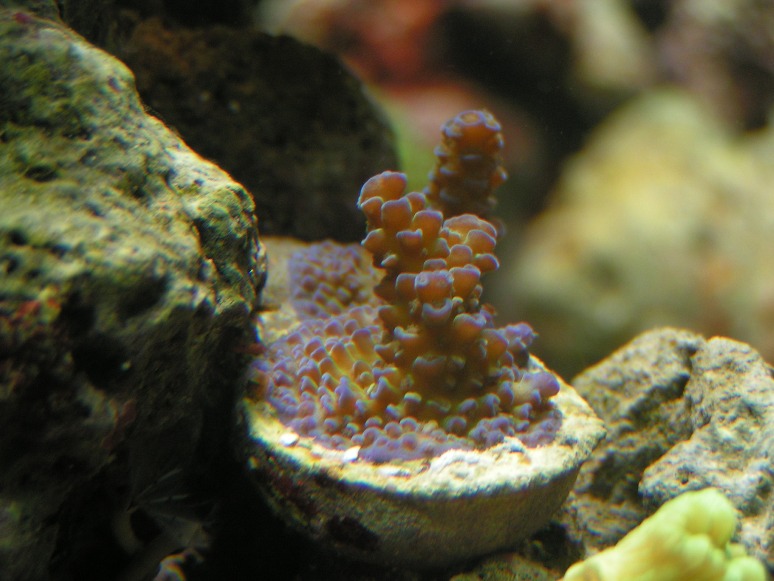 2 små blå acropora fragmenter, de er blevet rigtig flotte, og jeg glæder mig til de vokser sig store.
