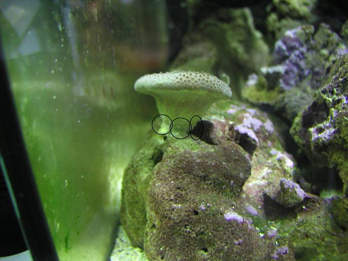Ringene markerer gevækster der vokser ud af korallern, det ligner lidt vat/svamp..