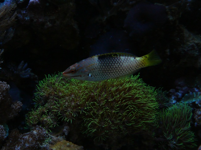 Har skillet mig af med kamelrejen, der begyndte at spise korallerne, ( som Han$en også gjorde mig opmærksom), desuden den seksstribet gylte og den stribet kirurg, da jeg synes at der var for mange fisk i forhold til svømmepladsen. Jeg har desværre opdaget at min palekirurg "græsser" mine hjernekoraller, så de ser ud til at have det meget skidt nu. Har prøvet at fange kirurgen i en fiskefælde men det er ikke lykkedes endnu