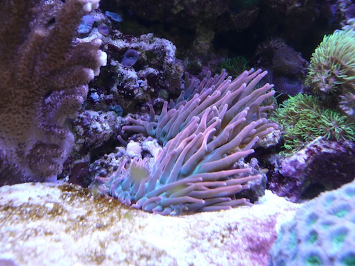 For et par dage siden besluttede jeg mig for at fodre anemoner med nogle optøede rejer, og sørme efter et par timer have den ene anemone delt sig! Så nu er der fire anemoner-én til hver af klovnene