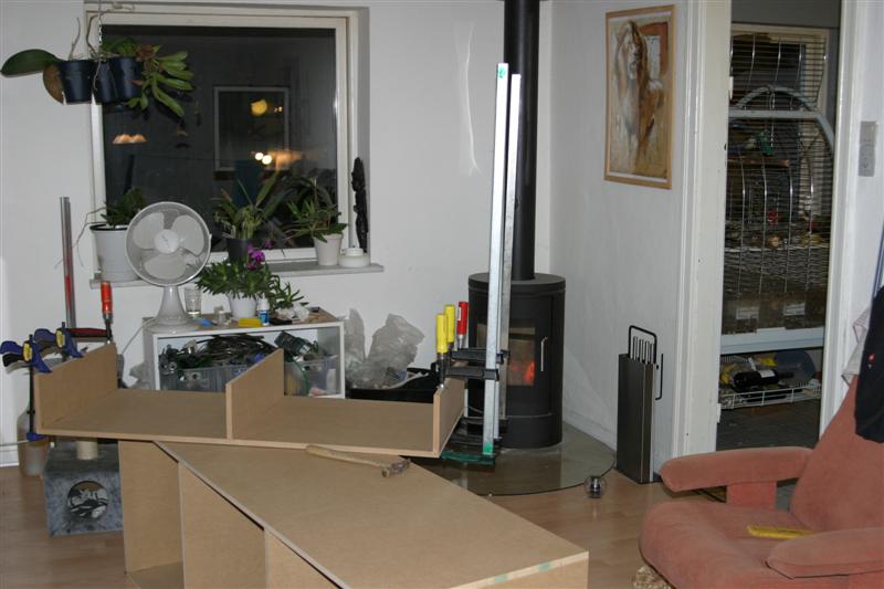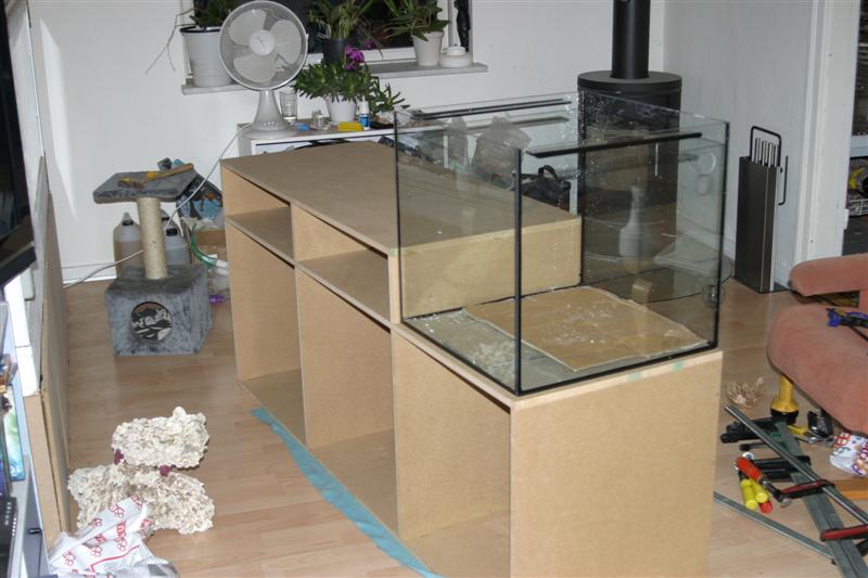 Så blev det tid til at skifte det lille 54 liter nano ud med et lidt større. I den forbindelse blev konen og jeg enige om at skifte lidt ud i vores møbler i stuen, både for at få lidt mere plads men også for at prøve at lave det lidt i samme stil det hele. Det nye møbel hvor vi håber vi kan få plads til alle de ting der skal gemmes, bliver så et kombineret akvaire/TV/opbevarings-møbel.