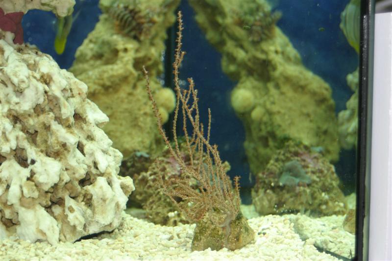 Jeg flytter det jeg har i mit 54 liter over i det nye. Det vil altså sige lidt forskellige blødkoraller, enkelte stenkoraller, et par klovne, en meget lille hugo, en Acanthurus pyroferus, en seksstribet gylte og en Canthigaster valentini kuglefisk. Alle fiskene er ret små endnu, og det er planen de største skal flyttes til det store akvarie med tiden...