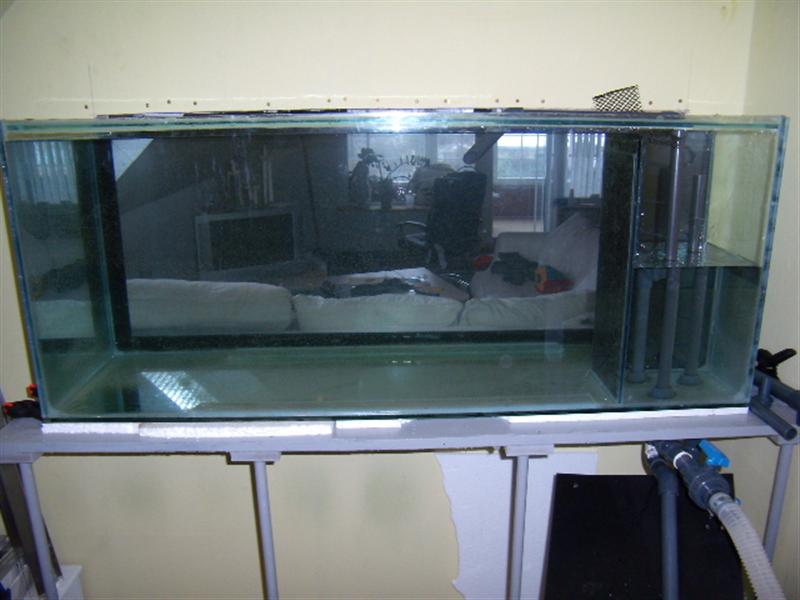 Hvor meget plads har du fra dit overløb og til frontglasset? Det ser en anelse stort ud.. Ikke at det egentlig har nogen betydning udover at det kan være svært at have en stenopsætning til at dække overløbet, men hvis man ikke har planer om dette, så er det jo lige meget