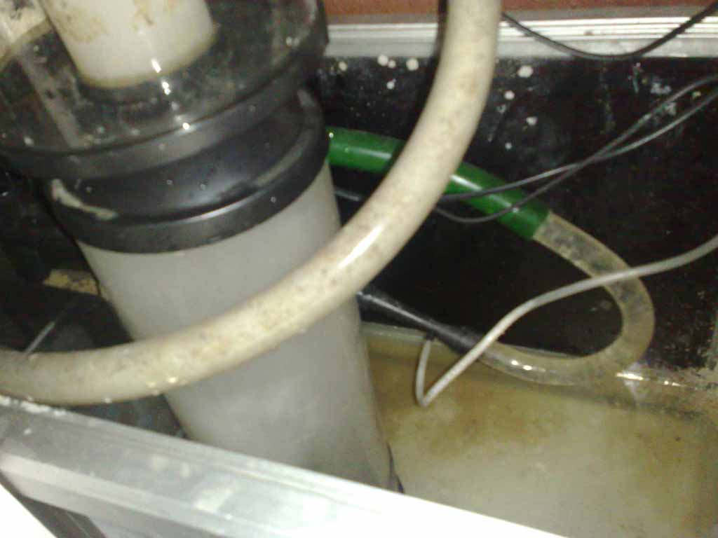 jeg tror dit problem er at pumpen giver for meget vand du skal montere er hane på slangen så du kan regulere vandmængden eller klemme slangen lidt sammen evt med en lille skruetvinge. jeg kan se på billede at din vandstand i skummer koppen er alt for høj den skal ned lige i underkanten af skummerkoppen så der kun er skum i selve skummerkoppen