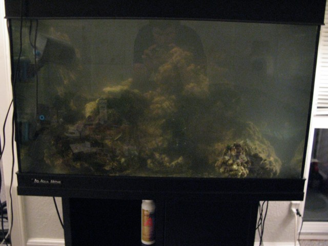 Det er forløbet i mit akvarium de sidste par dage. Gode råd eller erfaringer fra jer vil blive værdsat. Håber at kunne komme af med algerne og dino'erne over én kam her inden jeg begynder at fylde mere i.