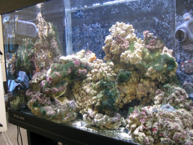 Jeg købte akvariet brugt d. 8./2. 2010 inklusiv original Aqua Medic Turbofloter Percula som bliver drevet af en OceanRunner 2500 med nålehjul. (vistnok en T-flotor 1000 modificeret af AM til at passe i sumpen). Derudover en AM 1000 ltr/t retur og to AM 1000ltr/t cirkulationspumper. Til sidst fik jeg også en AM Oceanlight 150W HQI med.