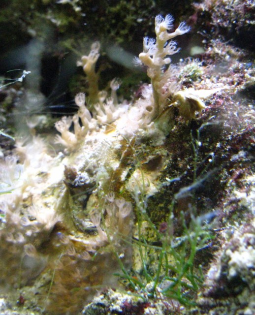 Jeg har lidt Xenia til at vokse et andet sted i akvariet og må indrømme at jeg synes ikke det ligner dette lille skud. Som Carsten er lidt inde på så ligner det en lille stilk på ca 1,5 cm hvorfra der udgår små arme med en polyp for enden. Men det er ligesom om der er flere små skud på vej i området omkring.