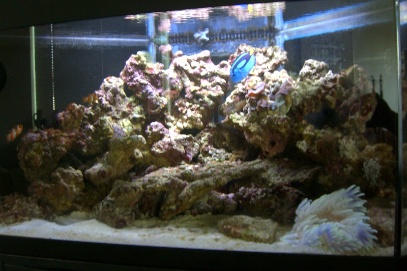 Det er ca 3 mdr siden der kom vand i, og evter ca 2 mdrs utålmodighed fra en "bekendt i huset" ... røg der klovne + eremitter + hugo i baljen. Disse har igår fået selskab af Bi-color + palet + rejer.