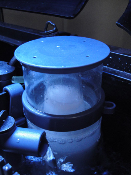 den laver bobler i vandet som den skal, men når boblerne kommer op til overfladen springer de og blir til vand støv som ender med at fylde skummerkoppen med vand. er det normalt ??? såvidt jeg ved sku koppen kun opsamle skum ??