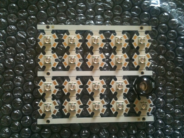 Så fik jeg pakke fra USA i dag, 24 x cree XR-E Royal Blue med 70 grader linser (ja det er ikke alle 24 på billedet, hehe). Så mangler jeg bare at bestille driver og heatsink fra Polen