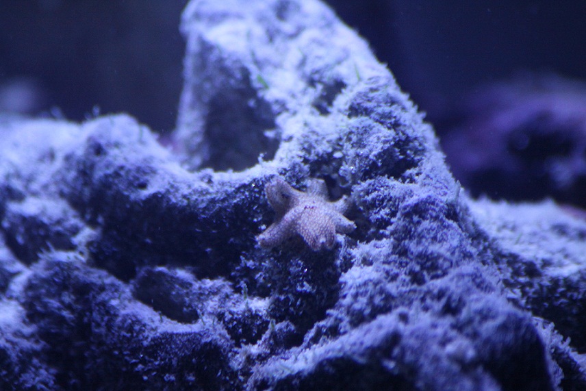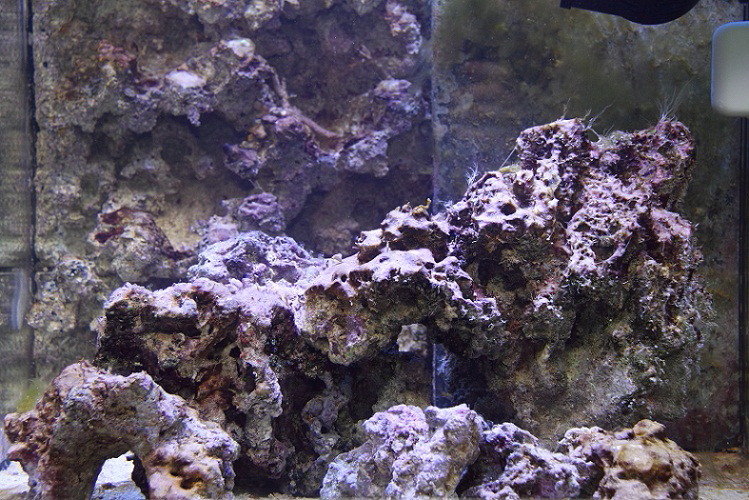 Der er lidt grønne og bruge alger (tror jeg, se billeder og video), ud over det har jeg observeret 7 - 8 søstjerner, nogle lange nærmest tråde / arme der kommer ud af div rør i stenene, de står ligesom og svajer lidt for lige pludselig at trække sig ind, så lidt liv er der.