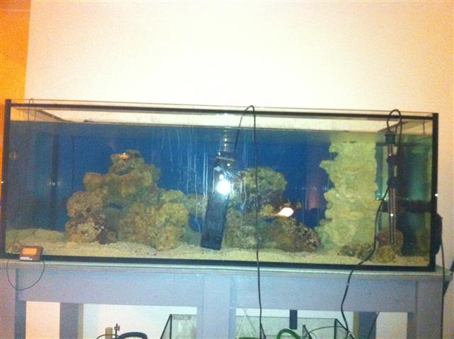 det hele blev færdigt til 1 december, men projektet blev så lidt forsinket da der skulle gulvmand på, så det hele stoppede i 3 dage...men derefter gik det rimeligt som planlagt..koraller og fisk kom i den nye balje fra d 25/ og frem til d 28/12. det eneste jeg har mistet endnu, er en lille tridacna