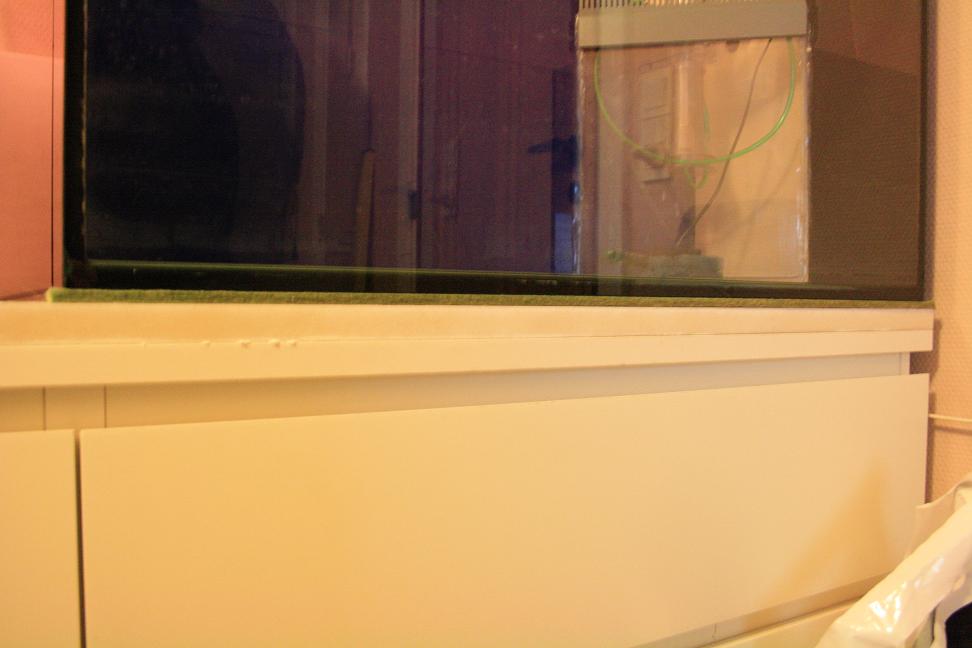 Jeg er igang med at ordne mit 112L akvarie langt om længe. Da jeg var igang med at fylde vand på opdagede at under akvariet var der luft/mellemrum mellem den plade akvariet står på.