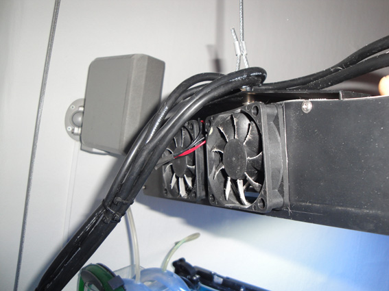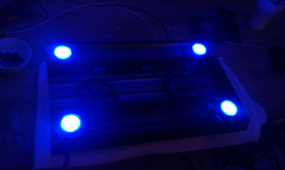 efter at ha prøvekørt lampen et par dage, måtte jeg montere to stk 60x60 mm pc blæsere i enden af lampen. uden blæser blev amaturet så varmt at man ikke ku røre det uden at brænde sig. jeg satte en fartregulator på, så jeg ku justere dem ned så de kun lige køler det de skal og 100% lydløse.