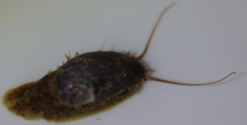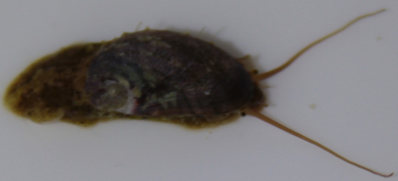 Nr. 2 er ikke en nøgensnegl selvom skallen måske kan være lidt svær at se. Skallen minder iøjenfaldende meget om en musling, og sneglen har da også forstået at nå nogen hiver i den så er det smart at suge sig meget hårdt fast på hvad man nu end sidder på, mens den gemmer sig inde under den lille skal.