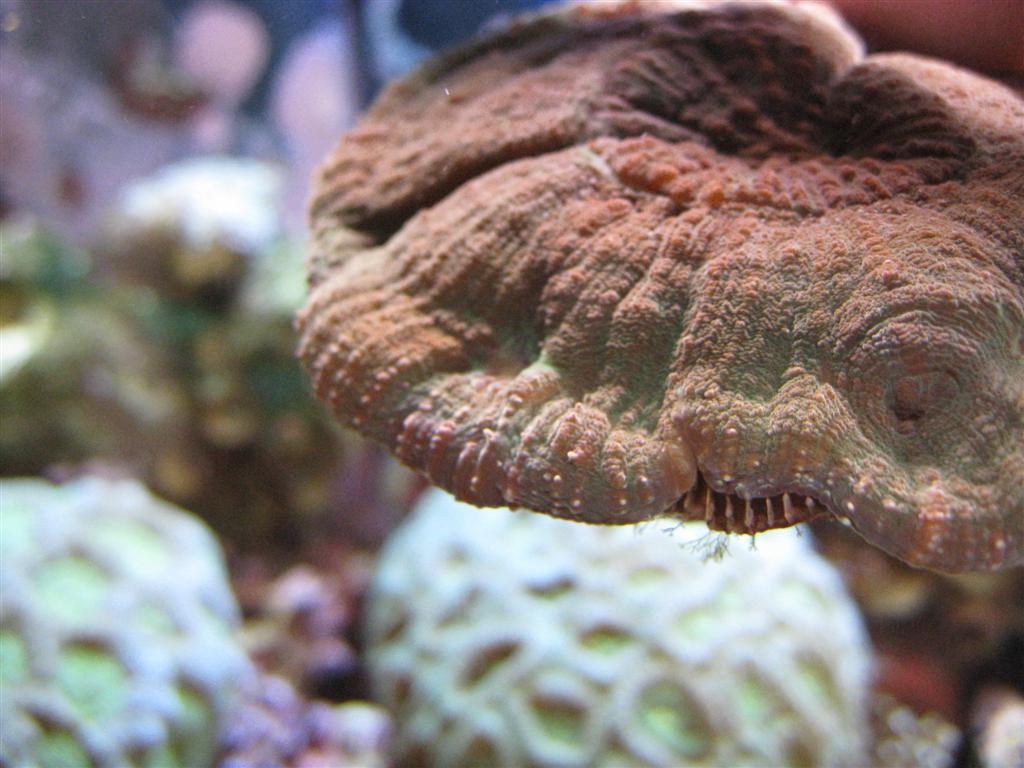 Jeg tror ikke det er en Australomussa fordi den er begyndt at danne nye små polypper langs kanten af kolonien og corallite væggene antager tilsyneladende ikke samme form som illustreret her: