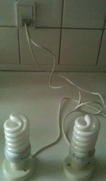 OK jeg havde tænkt på en 7 watts sparepærer - den burde give 25 watt - en af dem på hver side - totalt 50 watt?