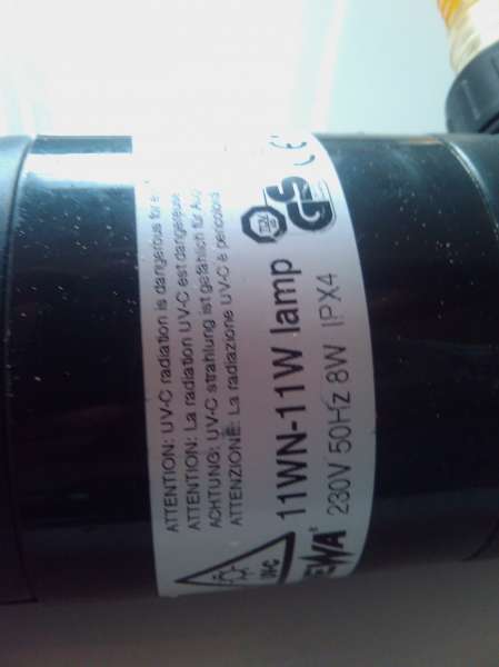 Mærket er Newa 11WN-11W LAMP. Og så står der uv-c på den.