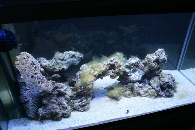 Som jeg skrev i det sidste indlæg her i min tråd, så er jeg flyttet og har selvfølgelig flyttet akvariet med. så der er kommet en helt ny stensætning, og kommet reefkeramik på overløbet.