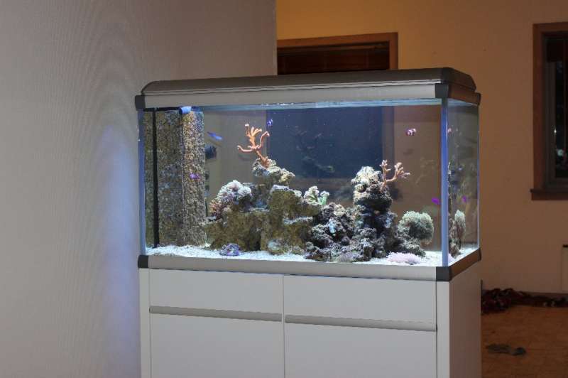 Jeg startede akvariet op i fredags den 2 sep. mine planer for akvariet er, at der primært skal LPS og SPS koraler i, og selvfølgelig den klassiske klovnfisk, lidt kirugfisk og så må jeg ellers med tiden se om jeg vil have andre fisk i, men nu skal det ihvertfald have lov til at stå og køre ind. så nu er det bare den satans ventetid jeg skal over :-D