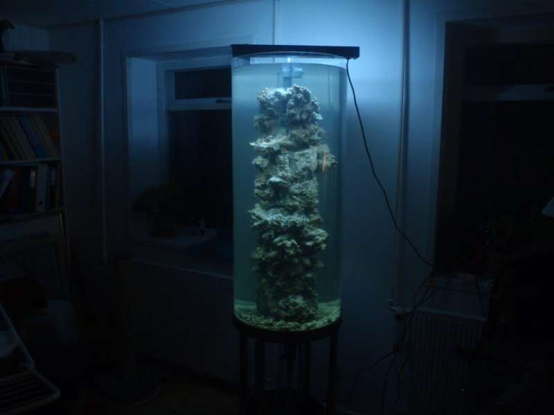 Mit nye akvarie er resultatet af et par tilfælde; jeg fandt for et par år siden et 3m langt akrylrør på 46cm i diameter i et læs affald. Jeg gemte de 105cm af det som ikke var revnet indtil nu, i håb om at finde en god anvendelse. Jeg har overvejet alt fra barskab til saltvandsakvarie, og som I nok kan gætte, blev det det sidste.