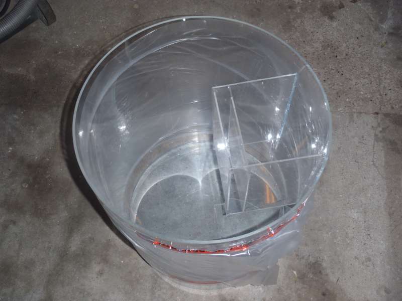 Jeg fik min sump i går; Ø400 x H500mm akrylrør med bund købt på tysk Ebay. Paradoksalt at genbruge og polere et gammelt rør op som hovedakvarie, og så købe et sprit-nyt til sump... Logikken glimrer totalt ved sit fravær, men done is done!