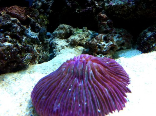 der er lige den lilla fungia, på bunden, den passer ikke i den tank, den skal ha' 530L auning vand :wink: