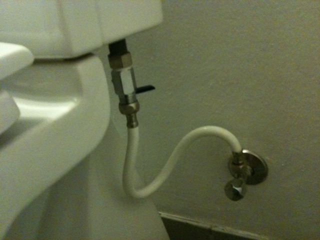 Den nemmeste placering for mig var på vores toilet, med tilslutning bag selve kummen.