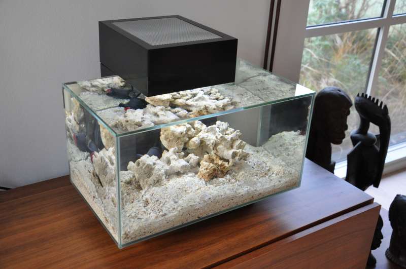 Egentlig ville jeg have haft et større, men den effekt det giver at kunne kigge ned i akvariet ovenfra, ville jeg ikke gå glip af.