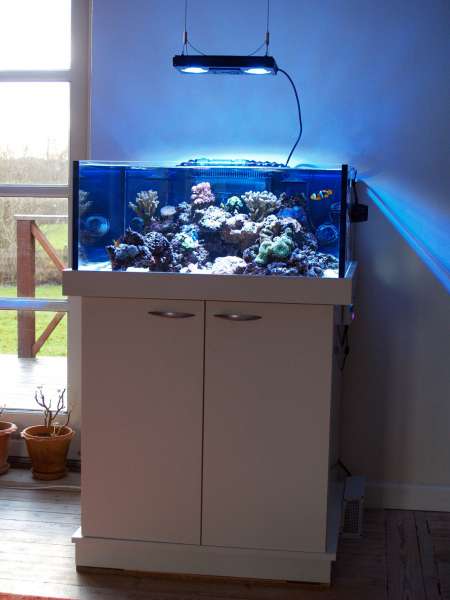 Vand, levende sten, koraller og fisk er alle overført fra mit nu nedlagte 350 liters akvarium.