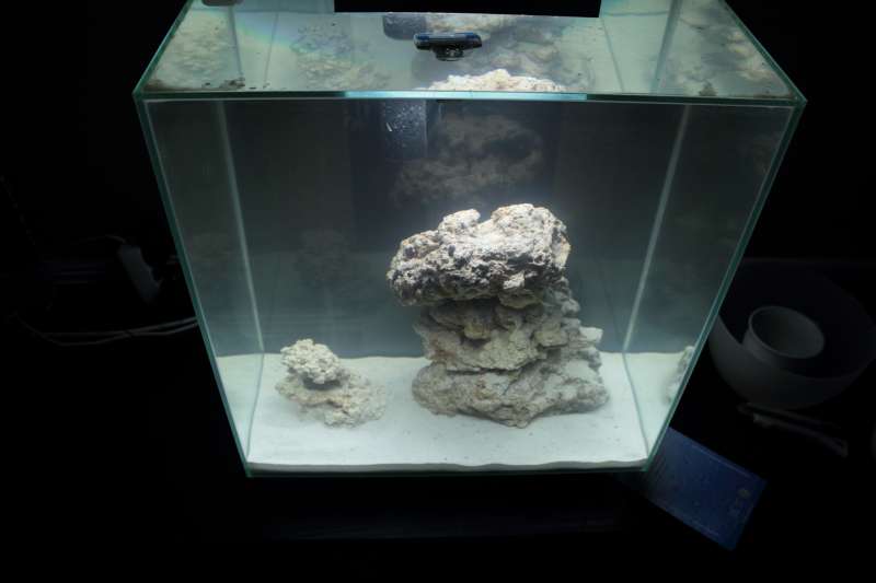 Der er ikke meget nyt at se da akvariet bare står og kører ind. Det er lidt over 2 uger inde i indkøringen og der er kun meget lidt brunalge at se... tror ikke jeg får den store omgang så det er jo fint.