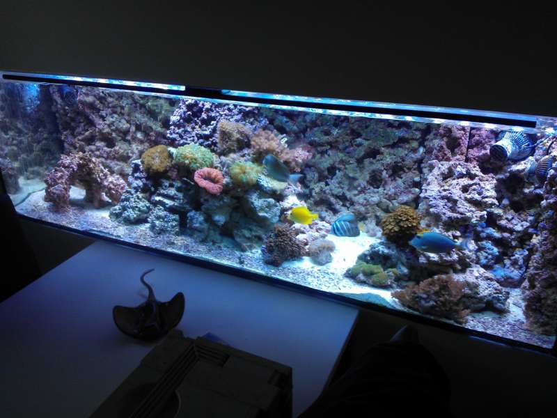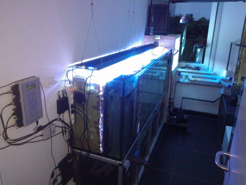 Akvariet er et helt glas 720 (200 x 60 x 60), med en 280 liters sump (180 x 35 x 45).
