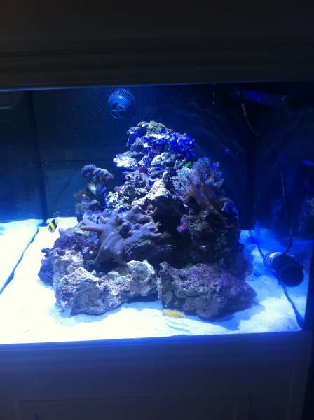 Akvariet er et helglas akvarie på 290 liter mål h 50 b 90 d 65.