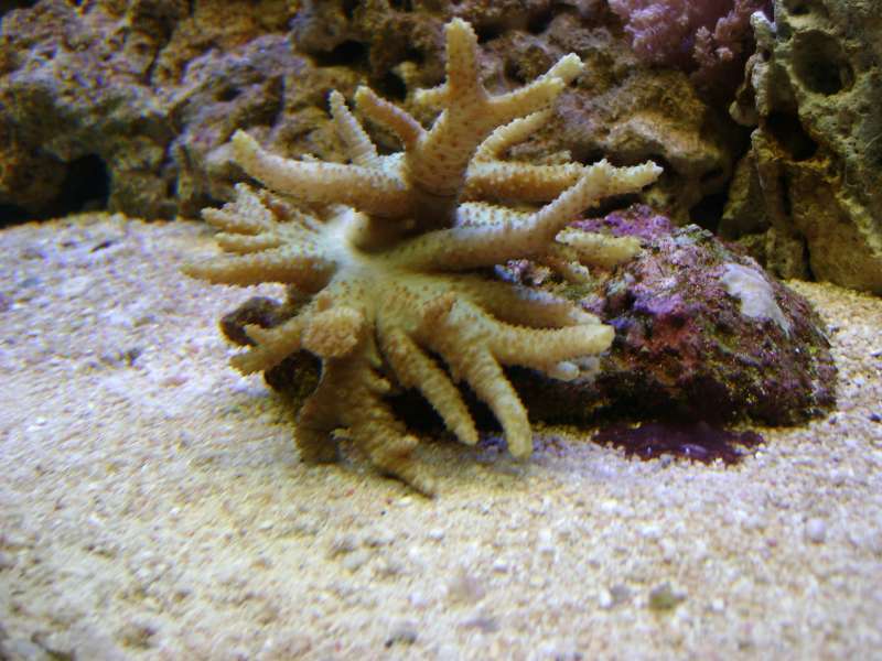 Hverken kalkalger eller cyano kommer fra korallen. Men cyano foretrækker steder med lav cirkulation, hvilket passer fint med at det kommer hvor der er "læ" under din koral...