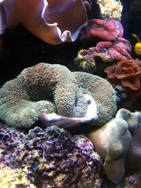 Min squamipinnis er endnu uberørt, men er den der har været i akvariet før chromis kom i og den hviler under stenene, måske den er for stor?
