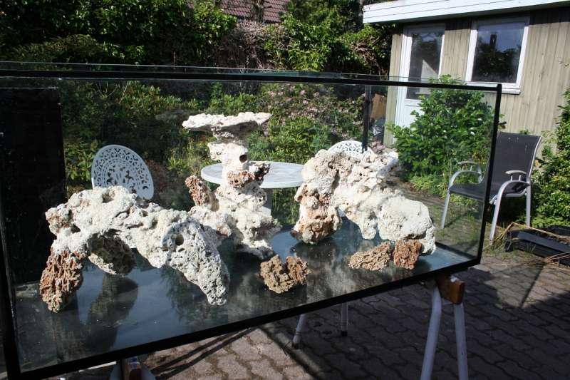 Det ser godt, men der skal selvfølgelig lige suppleres med lidt ekstra levende sten, fra mit nuværende akvarium så de døde sten kan blive levende igen. Jeg har taget et par billeder, så I kan få en forsmag på mit nye akvarium. Der er selvfølgelig lang vej endnu, men jeg er fortrøstningsfuld, og glæder mig til at komme i gang med bordet snarest muligt.