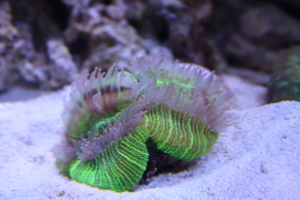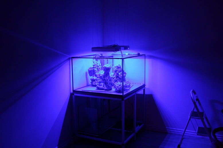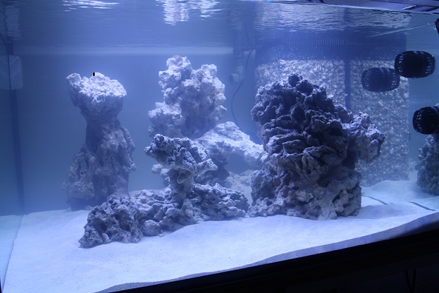 min plan om at vente med at komme liv i akvariet blev ændret, da der skete et eller andet i det akvarie som jeg opbevarede mine fragmenter i alt var ved at dø så jeg smed alt i det nye akvarie efter mindre end 1 uge. Her 2 efter er alt i live og alt gror rimeligt fragmenterne er groet fast på stenene og kalkalgerne er begyndt at komme på ruderne. og farverne på korallerne er ved at blive gode.