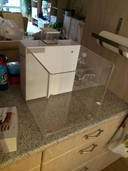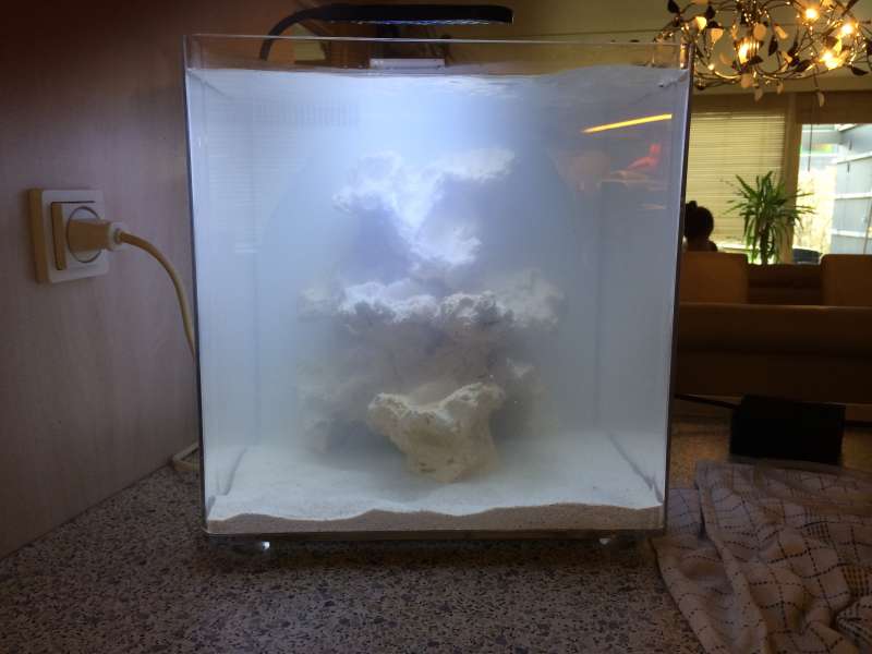Som jeg har hørt ville han først have lavet et lille Tunze nano akvarie, dette er nu droppet til fordel for Iboxen og dens udstyr, dog bliver lampen skiftet da den vist ikke er så meget værd iforhold til hold a koraller.