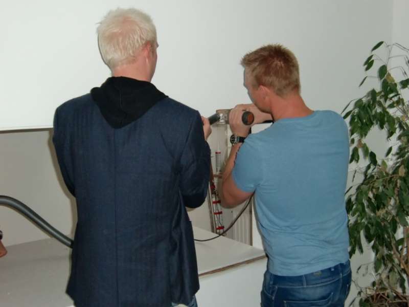 Mit er dog noget mindere en anden løsning er også at få skruet væggen fast fra loftet af.. Hvis hullet skal være stort, eller rive væggen ned over baljen og bygge den op igen af gibs, - der er flere mugligheder