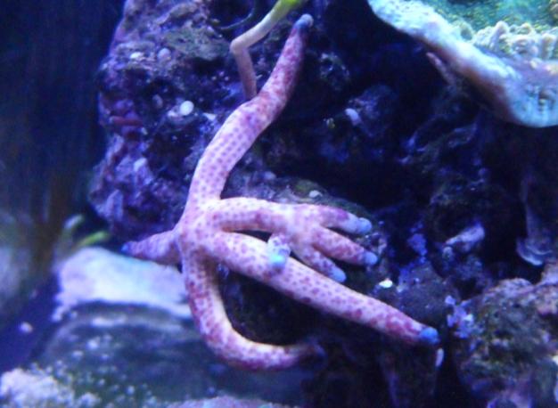 - et par turbo snegle og en søstjerne som hang fast på en koral, er ikke sikker på hvad det er for en måske en linckia i en rød plettet version