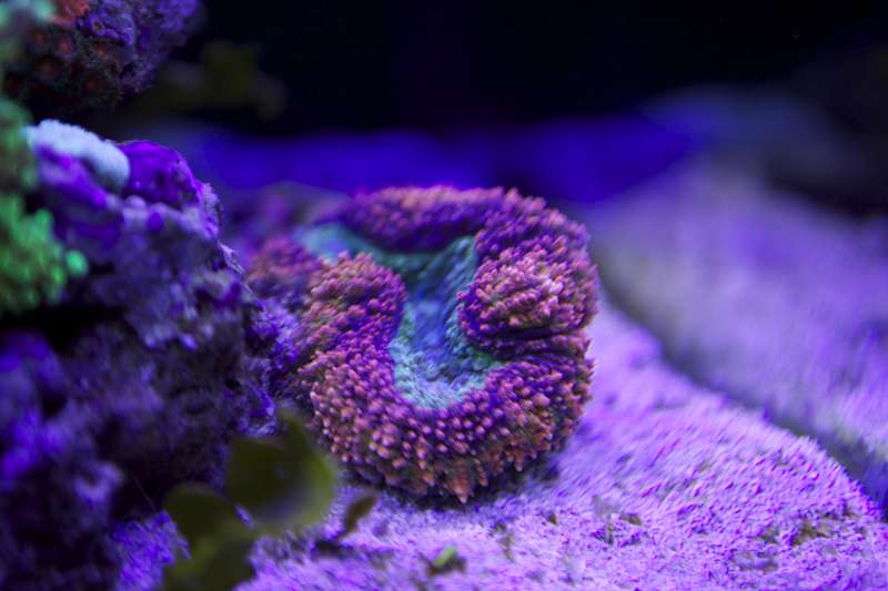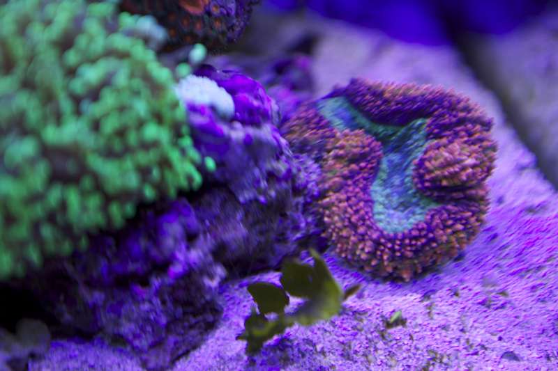 I selve akvariet er der omkring 20 kg levende sten og nogle kilo sand.