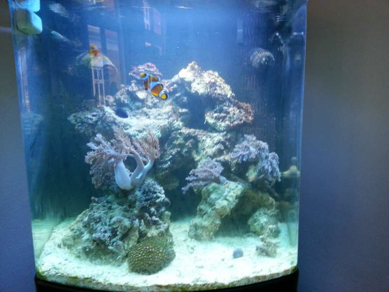 Hey folkens, som så mange andre vil jeg da lige dele mit nye erhvervede vandpyt:) har haft det til og køre en 3 uger siden jeg overtog det, ( hentede det med vand og det hele) syntes selv det ser rimelig fornuftigt ud taget i mente det har haft et flyt. der er kun et par sandsnegle og en søstjerne i plus to klovnfisk og en lille blå fisk der fulgte med( navn ukendt) så er der lidt blød koraler selvfølgelig.