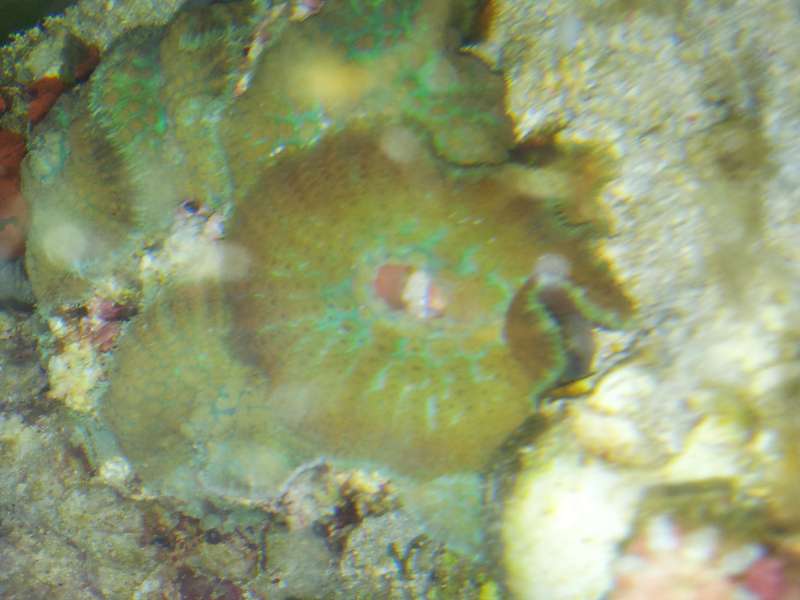 Rejen prøver nok at spise lidt af den klovnfisk, som den har inde i sig... Jeg prøv at tage et bedre billede af selv "skiven", så vi kan se om det er en mini anemone. Hvis det er muligt. Jeg har selv problemer med at tage gode skarpe billeder...