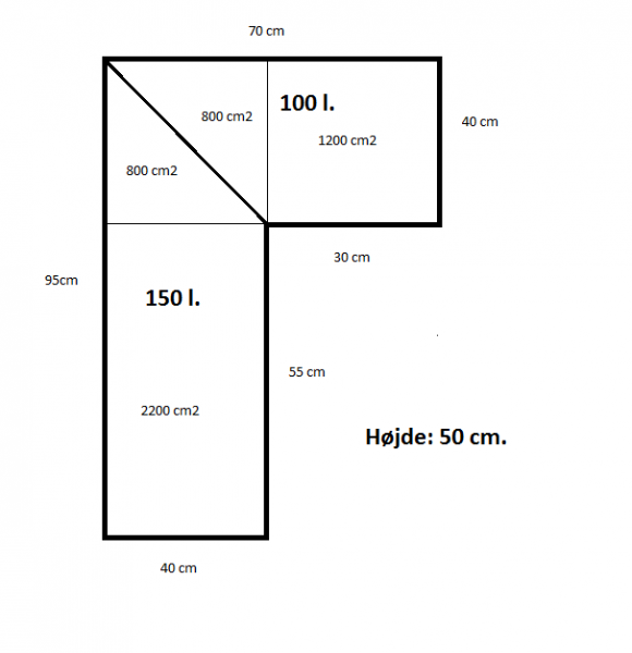 Dvs. et hvis det skal være 50 cm højt, så skal i have et bundareal på 100x50 cm. = 5000 cm2.