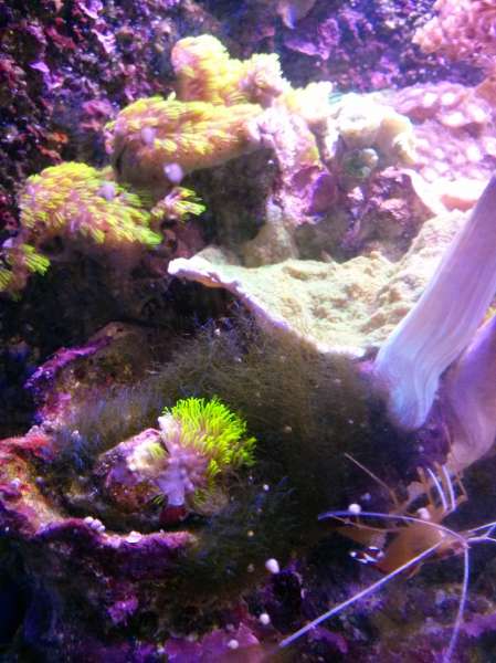 Jeg er virkelig ved at være løbet tør for råd. Mit akvarie kører super godt, mine koraller vokser rigtig pænt, men der vokser en alge konstant over det hele i små klaser! Er der nogen der kan identificere denne alge? og evt. ved om der er nogen dyr der kan fjerne den, for jeg kan ikke fjerne den manuelt da den så vender tilbage 3-4 dage efter.