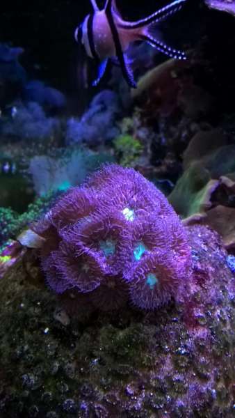 Montipora digitata i blå, rød, grøn og lilla