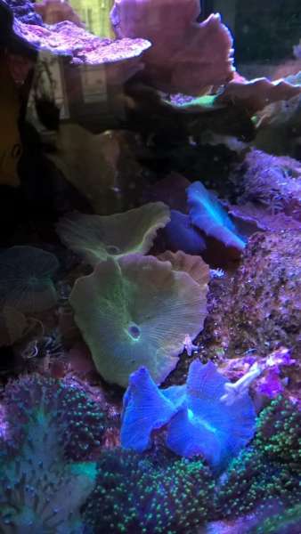 Nå men efter ulykken med VSV så kører det hele igen og jeg har nok skiftet cirka 120 liter vand de sidste 4 uger. Jeg døjer lidt med brune slimalger og dem havde jeg også da jeg brugte VSV. Det skyldes sikker fosfat og jeg kan se at algerne er aftagende men og de har ikke siddet på korallerne. Jeg tror måske de skyldes at mine knap-polypper var placeret et sted hvor de ikke fik lys nok. Polypperne begyndte at dø og har sikker afgivet noget fosfat. Polypperne er flyttet og har det meget bedre nu.