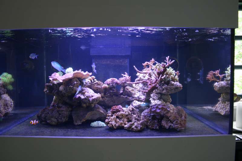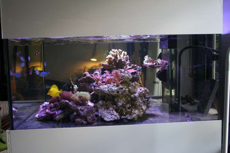 så må det være tid til en update akvariet begynder og køre rigtig godt og det kan tydeligt ses på koralerne deres farver er super fine samp vækst kanterne der er virkelig sket meget siden sidst her kommer der nogle billeder af det hele som det står idag :D