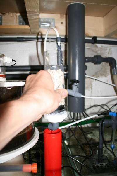 At føde reaktoren: Jeg har prøvet næsten alle de muligheder jeg kunne komme på. Jeg har prøvet hævert fra min fragtank, bypass på mit uv filter, dosseringspumpe og selvsugning fra sumpen. Det eneste der virker hos mig, er en selvstændig fødepumpe. De andre metoder stoppede enten til, eller reaktoren tabte trykket. Jeg bruger en Aqua Bee 1000L som fødepumpe og det virker perfekt.