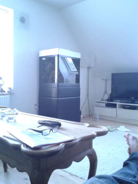 Som start akvarie fandt jeg et brugt rsm 130 i Herning til en MEGET fin pris (syntes jeg selv) og valgte dette pga af den forholdsvis store "wife says, uhmm okei" apperence denne tank har, med det hele gemt i selve set-uppet. Jeg syntes størrelsen er liiiige i underkanten, men da jeg bo sammen med en meget bestemt indretnings akitekt, tænkte jeg, vi starter her................. og når hun så også er blevet begejstret for lille "NEMO", forvirrede "DORI" osv. blir det nok muligt at opgradere